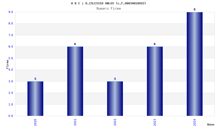 | Anno | Firme | Importi | Media | Naz. | Reg. | Prov. | Comu. |