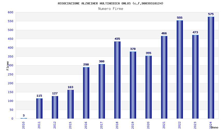 | Anno | Firme | Importi | Media | Naz. | Reg. | Prov. | Comu. |