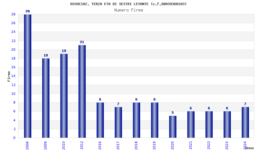 | Anno | Firme | Importi | Media | Naz. | Reg. | Prov. | Comu. |