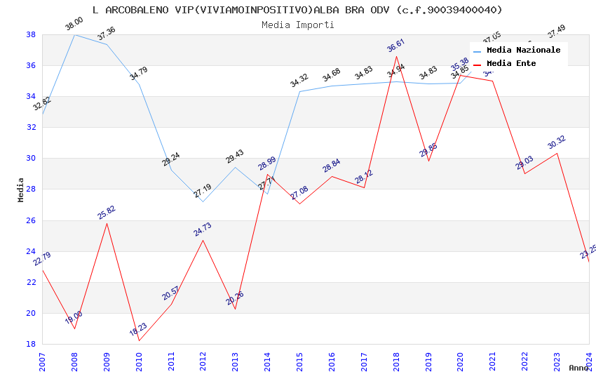 | Anno | Firme | Importi | Media | Naz. | Reg. | Prov. | Comu. |