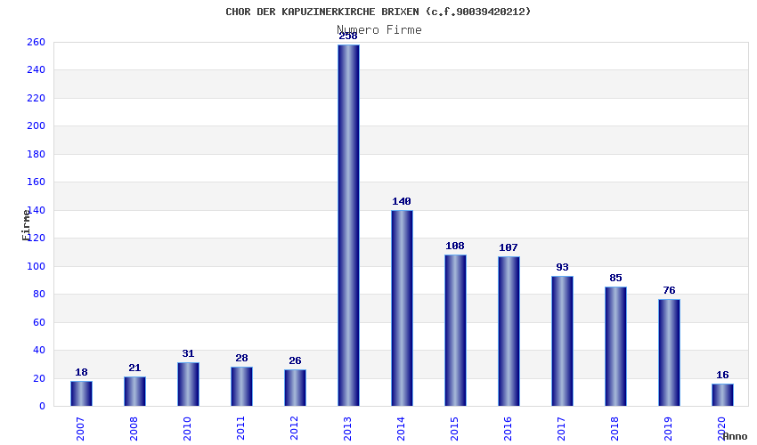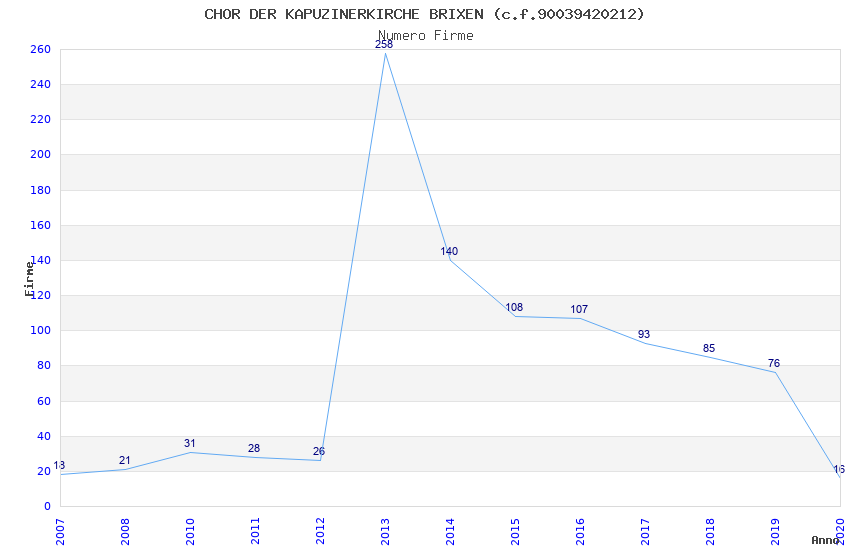 | 2013 | 258 | 5.186,86 | 20,10 | 8.350 | 159 | 85 | 12 |