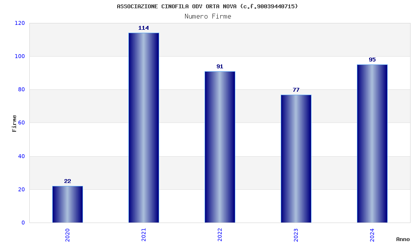 | Anno | Firme | Importi | Media | Naz. | Reg. | Prov. | Comu. |