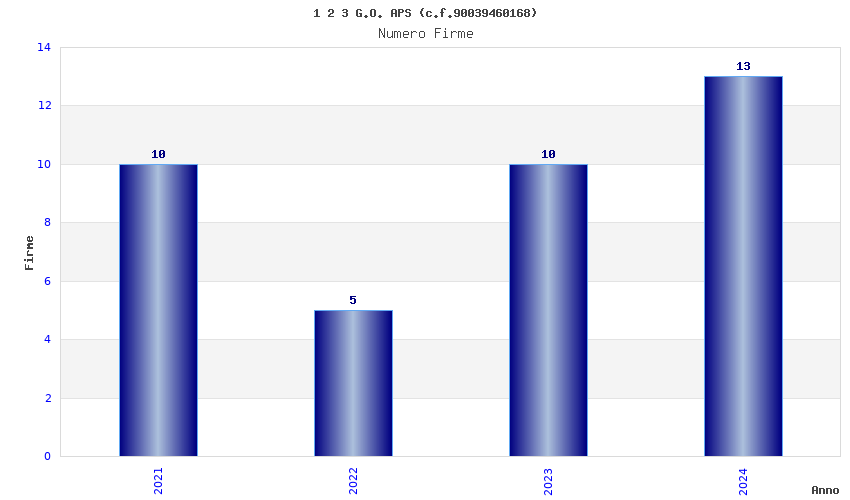 | Anno | Firme | Importi | Media | Naz. | Reg. | Prov. | Comu. |