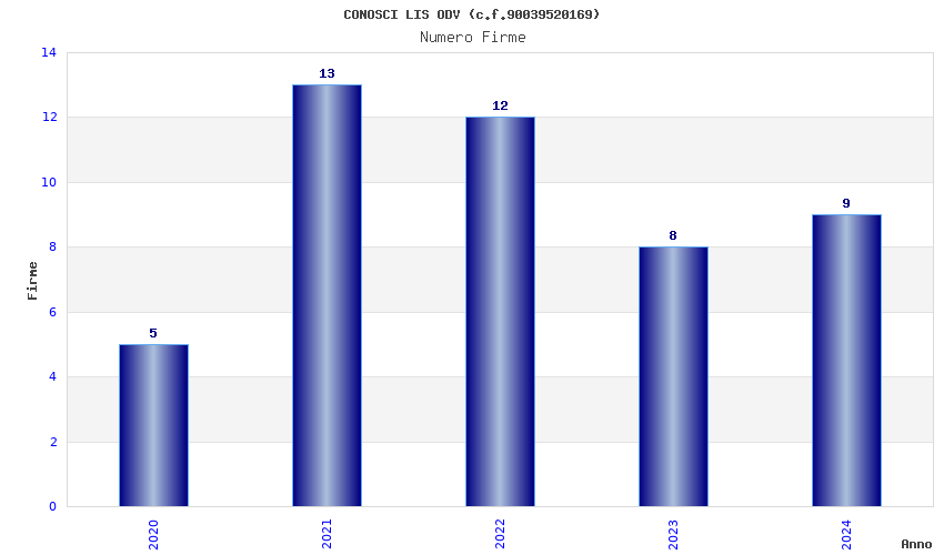 | Anno | Firme | Importi | Media | Naz. | Reg. | Prov. | Comu. |