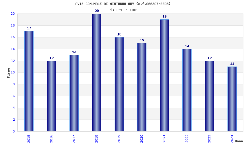 | Anno | Firme | Importi | Media | Naz. | Reg. | Prov. | Comu. |