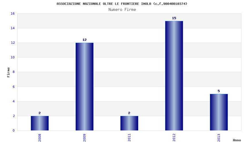 | Anno | Firme | Importi | Media | Naz. | Reg. | Prov. | Comu. |