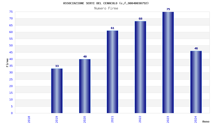 | Anno | Firme | Importi | Media | Naz. | Reg. | Prov. | Comu. |
