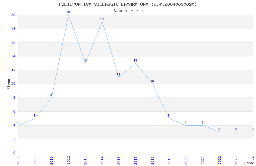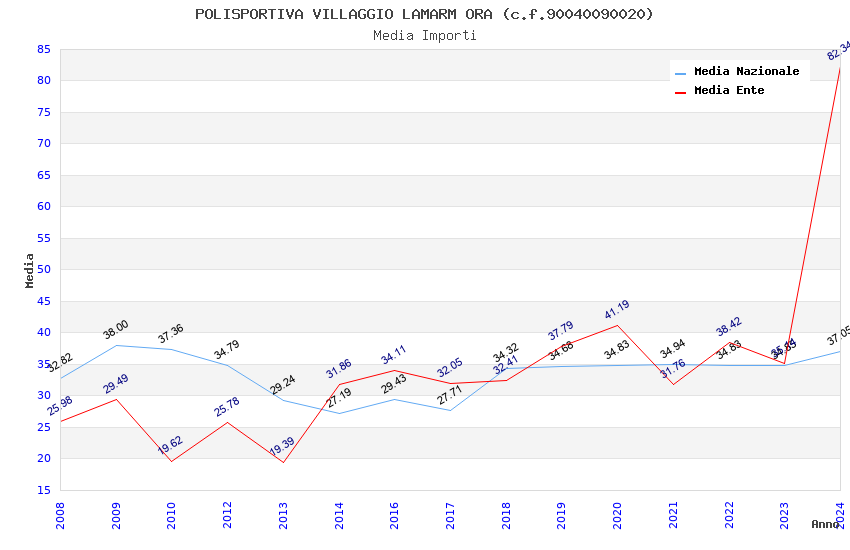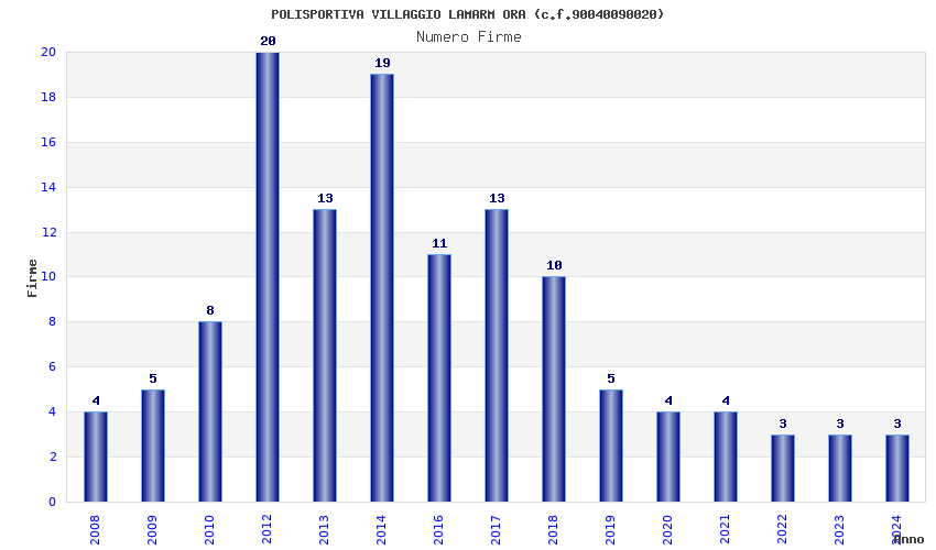 | Anno | Firme | Importi | Media | Naz. | Reg. | Prov. | Comu. |