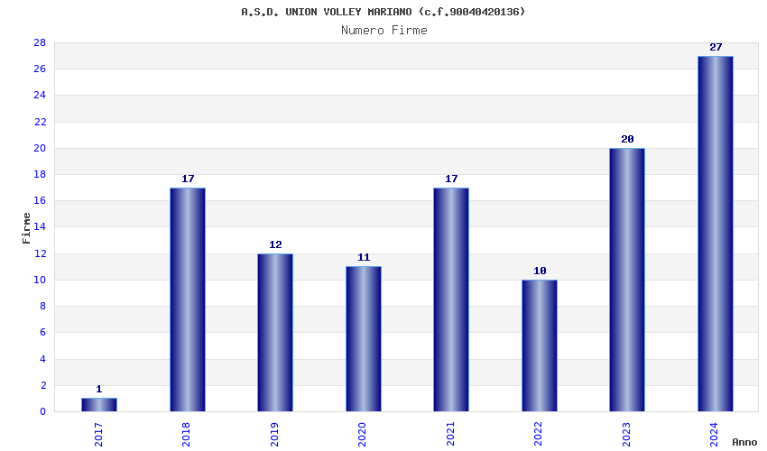 | Anno | Firme | Importi | Media | Naz. | Reg. | Prov. | Comu. |