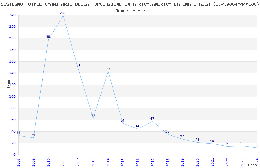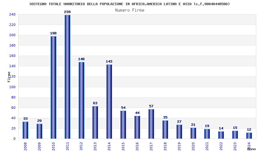 | Anno | Firme | Importi | Media | Naz. | Reg. | Prov. | Comu. |