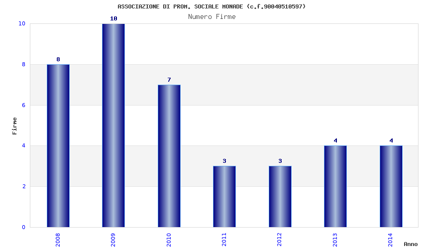 | Anno | Firme | Importi | Media | Naz. | Reg. | Prov. | Comu. |