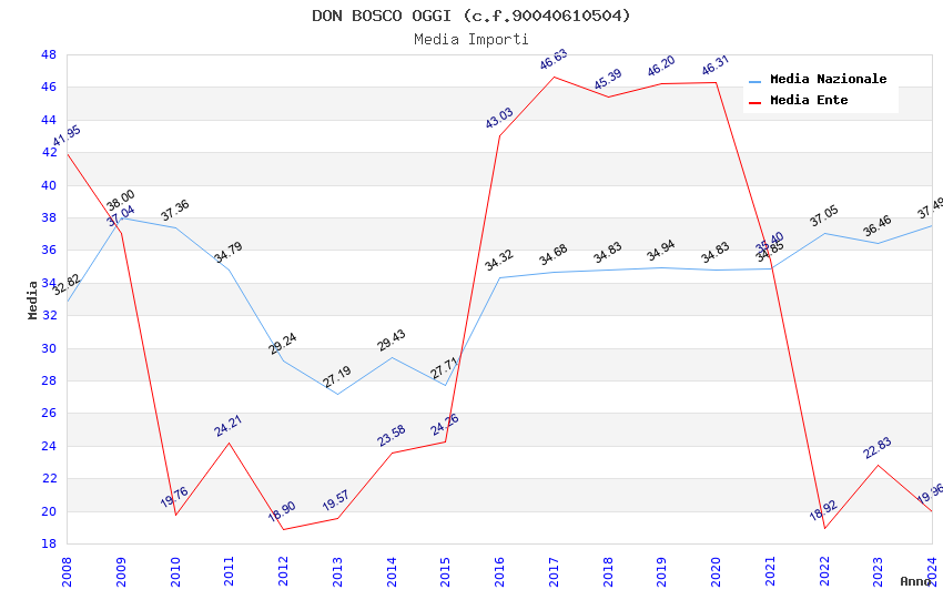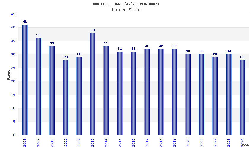 | Anno | Firme | Importi | Media | Naz. | Reg. | Prov. | Comu. |