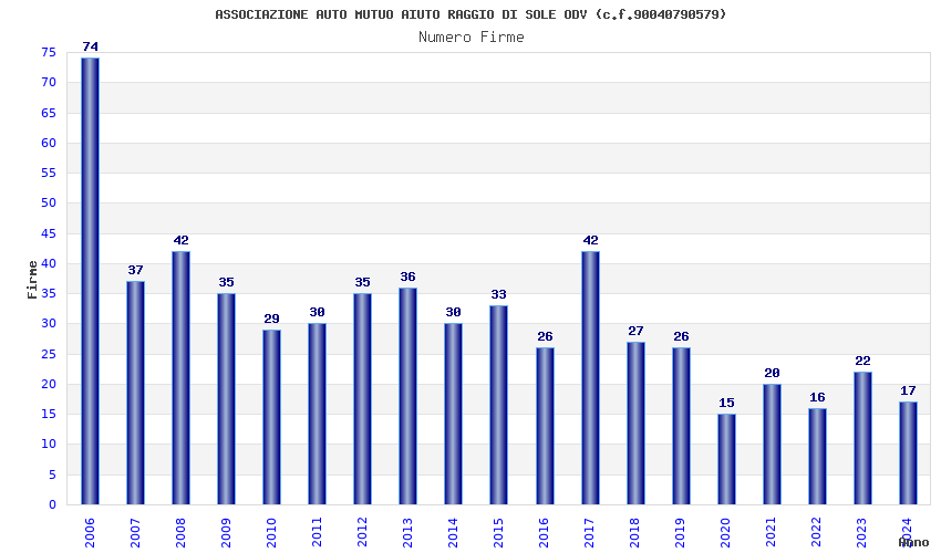 | Anno | Firme | Importi | Media | Naz. | Reg. | Prov. | Comu. |