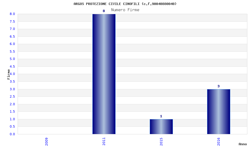 | Anno | Firme | Importi | Media | Naz. | Reg. | Prov. | Comu. |