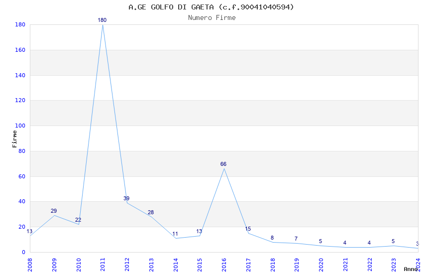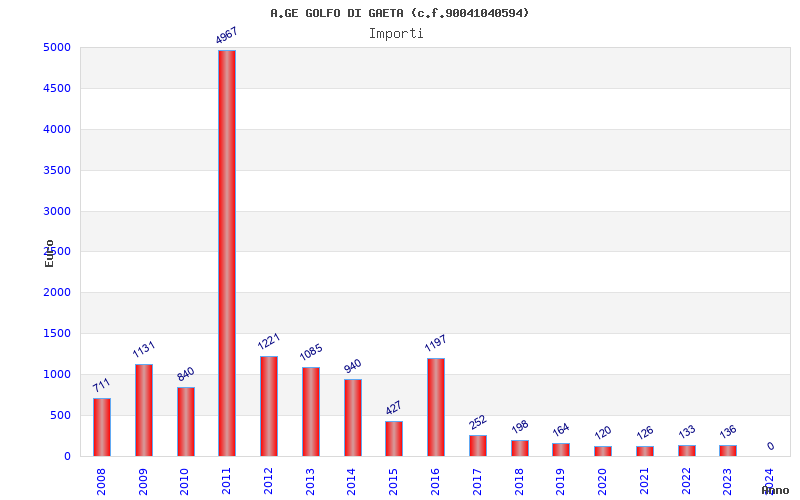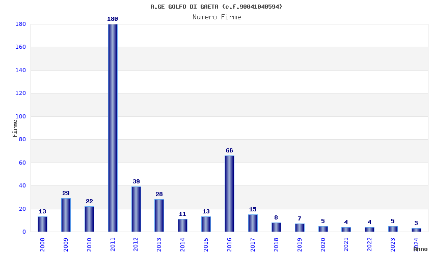 | Anno | Firme | Importi | Media | Naz. | Reg. | Prov. | Comu. |