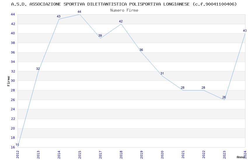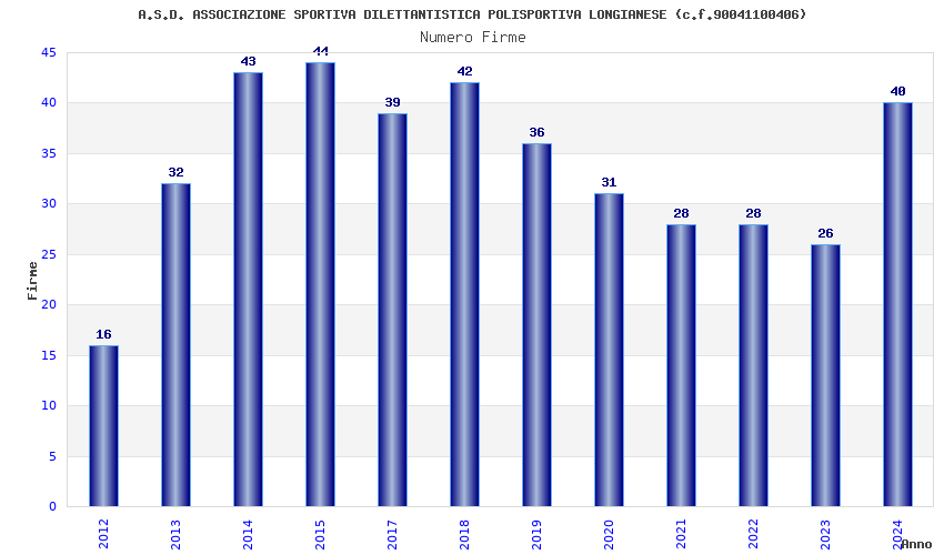 | 2015 | 44 | 1.713,50 | 38,94 | 23.949 | 2.132 | 207 | 4 |