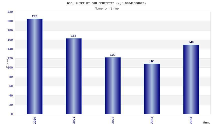 | Anno | Firme | Importi | Media | Naz. | Reg. | Prov. | Comu. |
