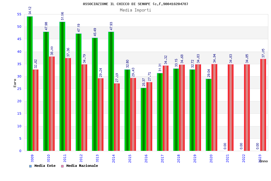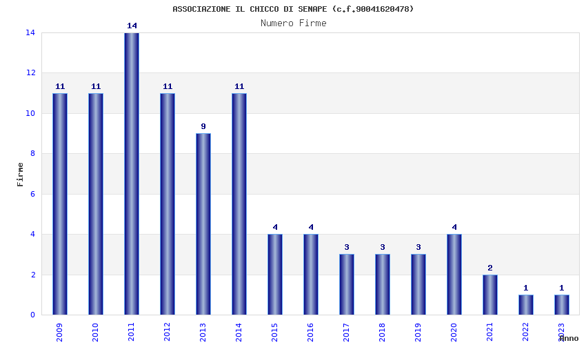 | Anno | Firme | Importi | Media | Naz. | Reg. | Prov. | Comu. |