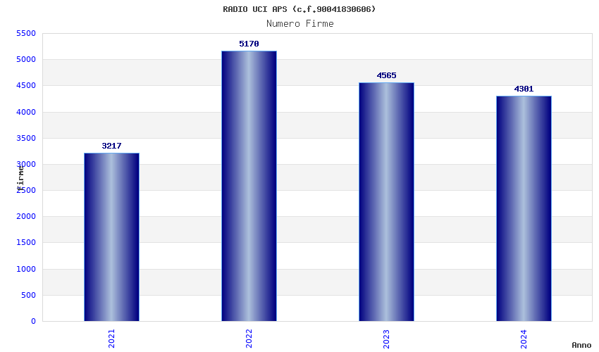 | Anno | Firme | Importi | Media | Naz. | Reg. | Prov. | Comu. |
