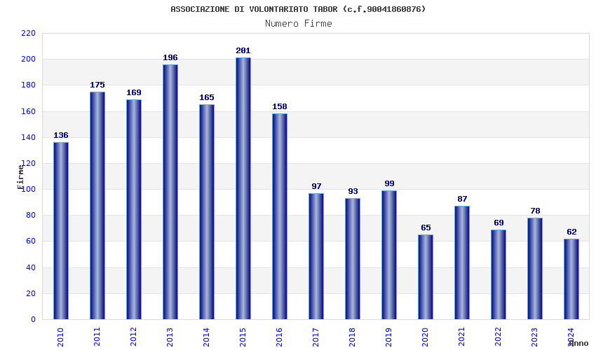 | Anno | Firme | Importi | Media | Naz. | Reg. | Prov. | Comu. |