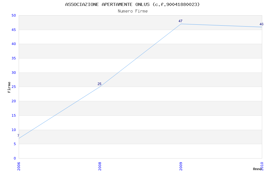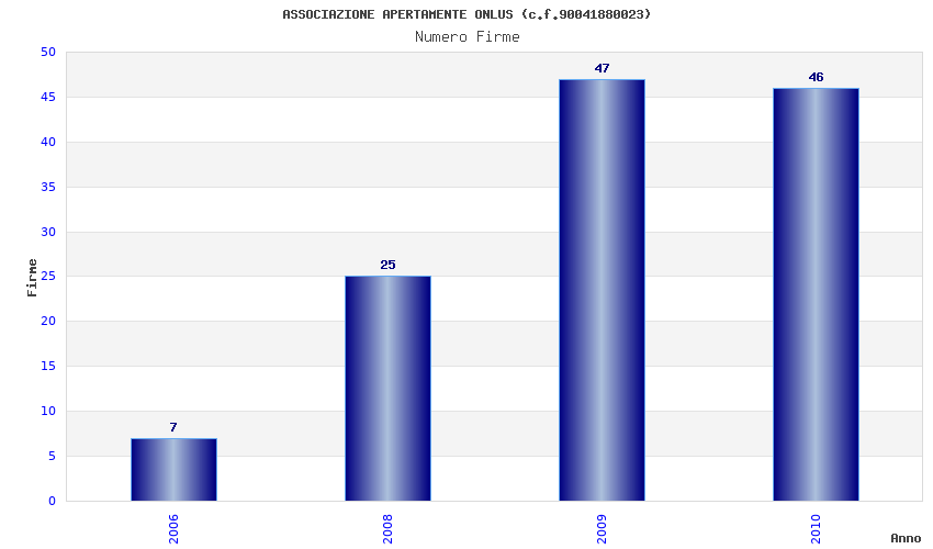 | Anno | Firme | Importi | Media | Naz. | Reg. | Prov. | Comu. |