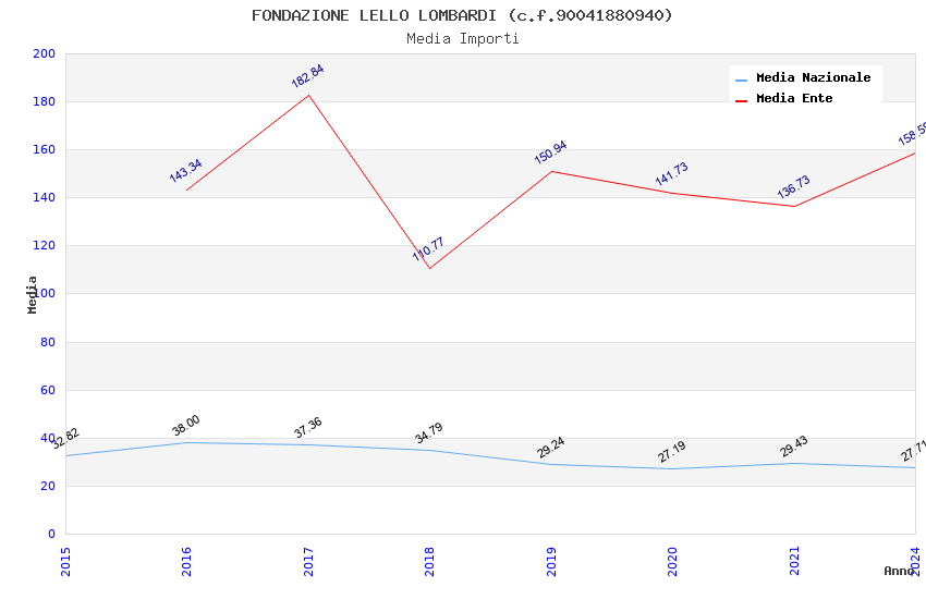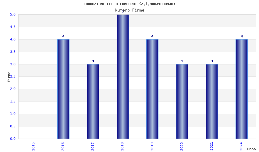 | Anno | Firme | Importi | Media | Naz. | Reg. | Prov. | Comu. |