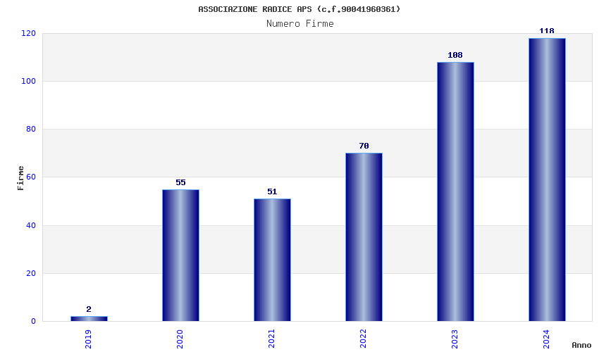 | Anno | Firme | Importi | Media | Naz. | Reg. | Prov. | Comu. |