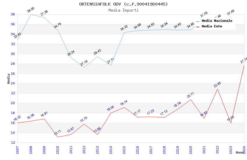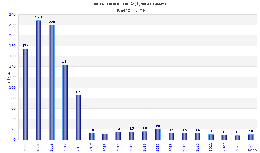 | Anno | Firme | Importi | Media | Naz. | Reg. | Prov. | Comu. |