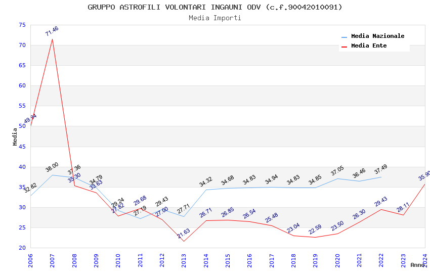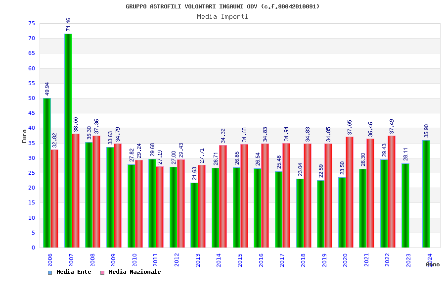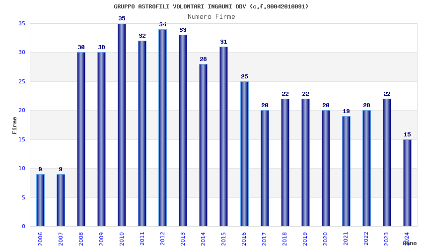 | Anno | Firme | Importi | Media | Naz. | Reg. | Prov. | Comu. |