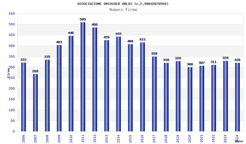 | Anno | Firme | Importi | Media | Naz. | Reg. | Prov. | Comu. |