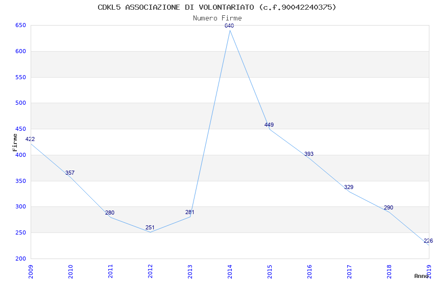 | 2019 | 226 | 9.413,38 | 41,65 | 5.543 | 504 | 140 | 3 |