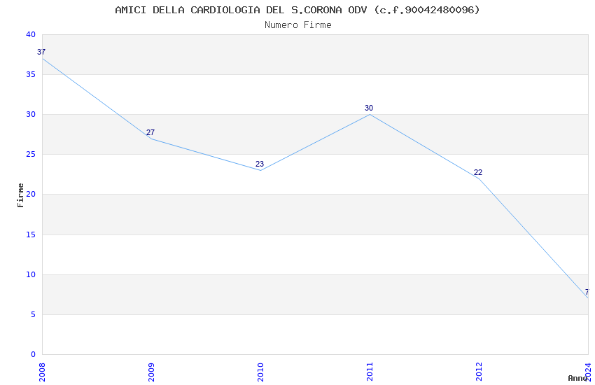 | Anno | Firme | Importi | Media | Naz. | Reg. | Prov. | Comu. |