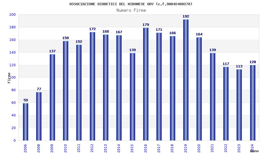 | 2019 | 192 | 5.551,67 | 28,91 | 10.055 | 949 | 136 | 8 |