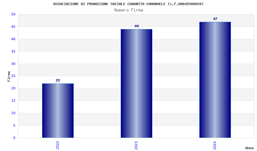 | Anno | Firme | Importi | Media | Naz. | Reg. | Prov. | Comu. |