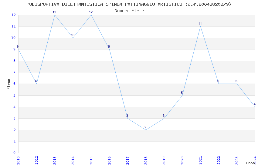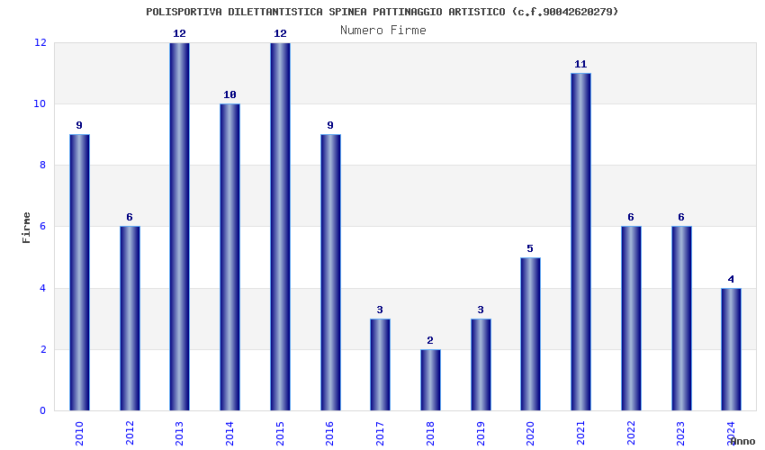 | Anno | Firme | Importi | Media | Naz. | Reg. | Prov. | Comu. |