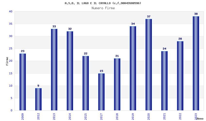 | Anno | Firme | Importi | Media | Naz. | Reg. | Prov. | Comu. |
