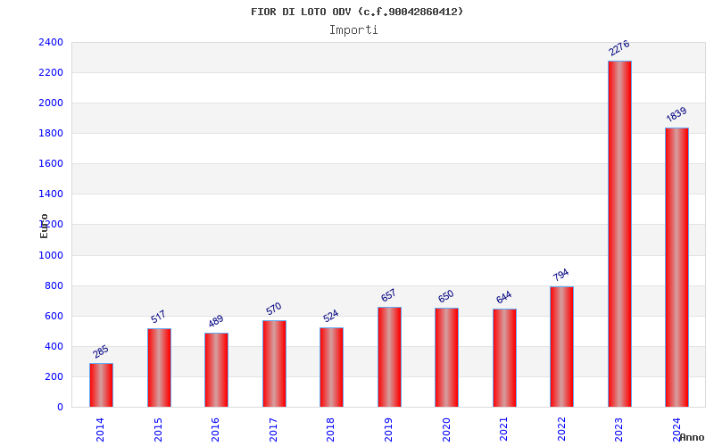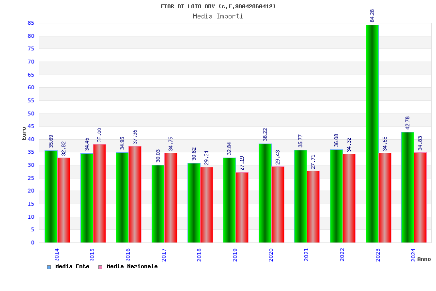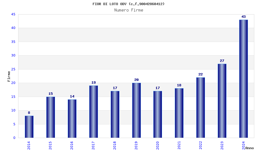 | Anno | Firme | Importi | Media | Naz. | Reg. | Prov. | Comu. |