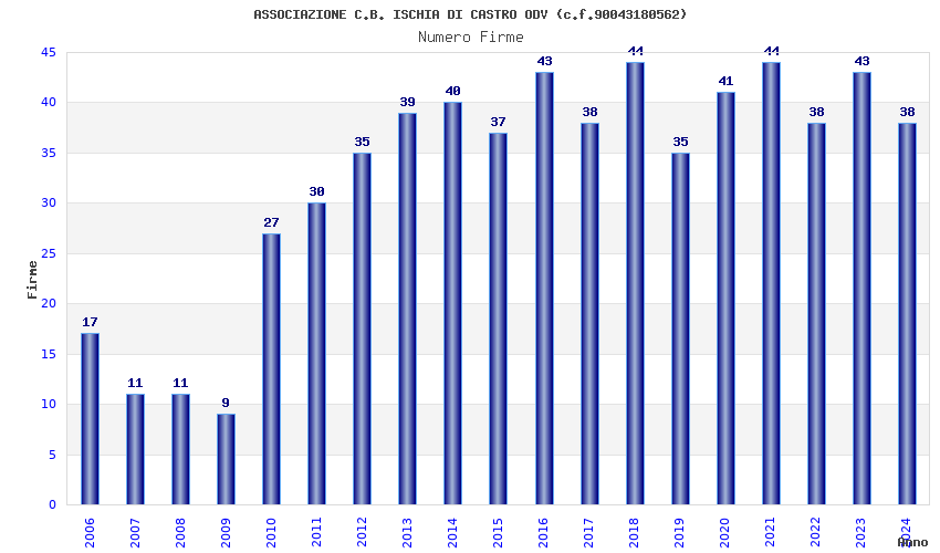 | 2021 | 44 | 803,91 | 18,27 | 40.118 | 3.626 | 159 | 1 |