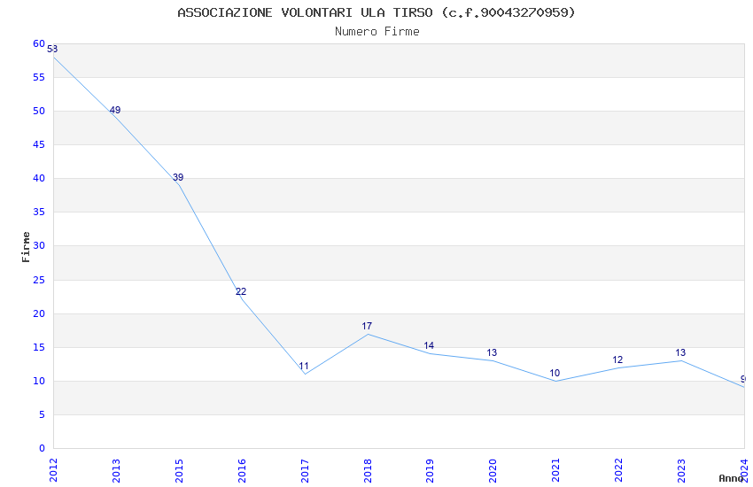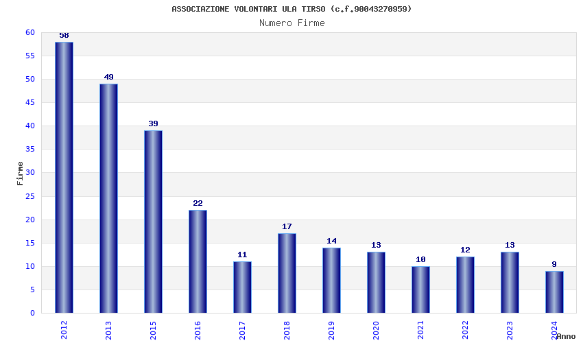 | Anno | Firme | Importi | Media | Naz. | Reg. | Prov. | Comu. |