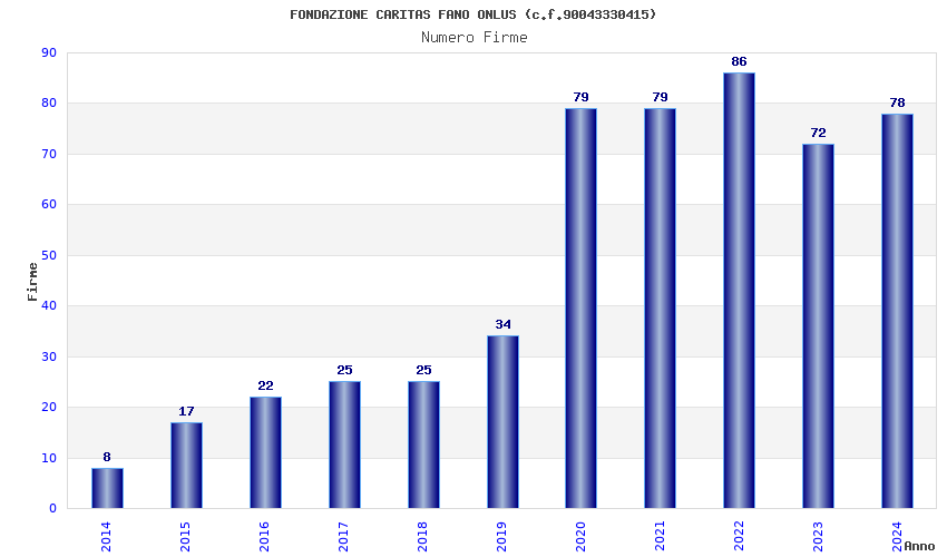 | Anno | Firme | Importi | Media | Naz. | Reg. | Prov. | Comu. |
