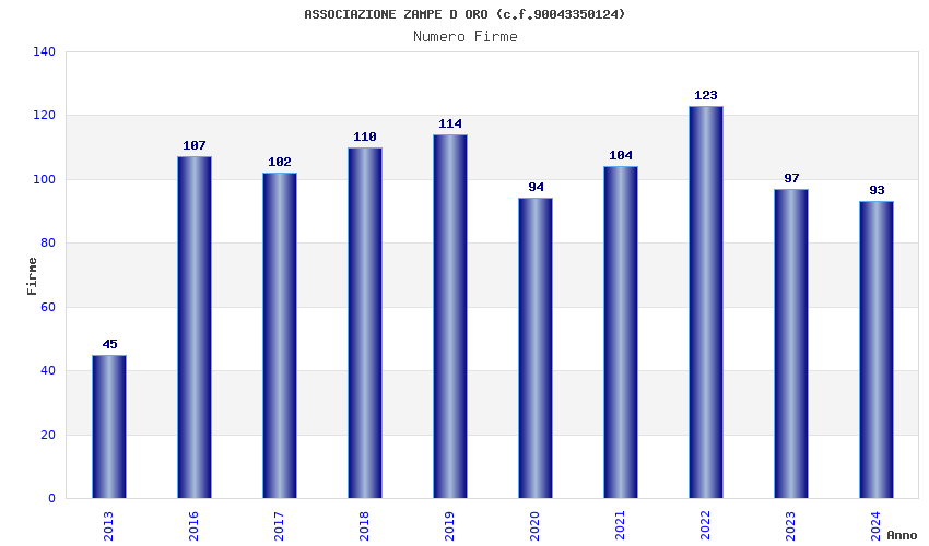 | Anno | Firme | Importi | Media | Naz. | Reg. | Prov. | Comu. |