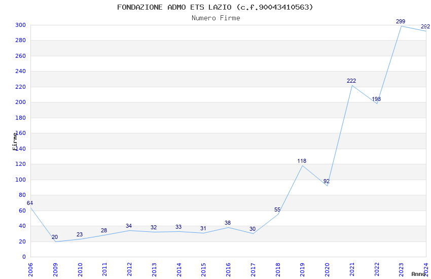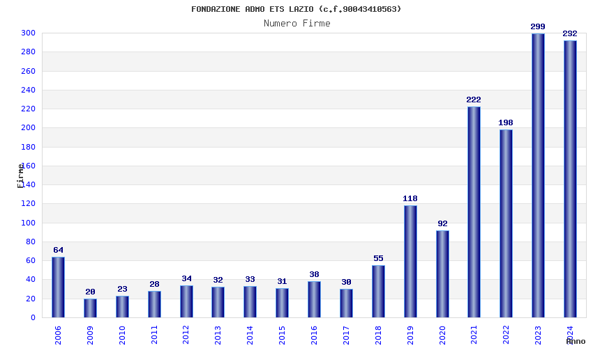 | Anno | Firme | Importi | Media | Naz. | Reg. | Prov. | Comu. |