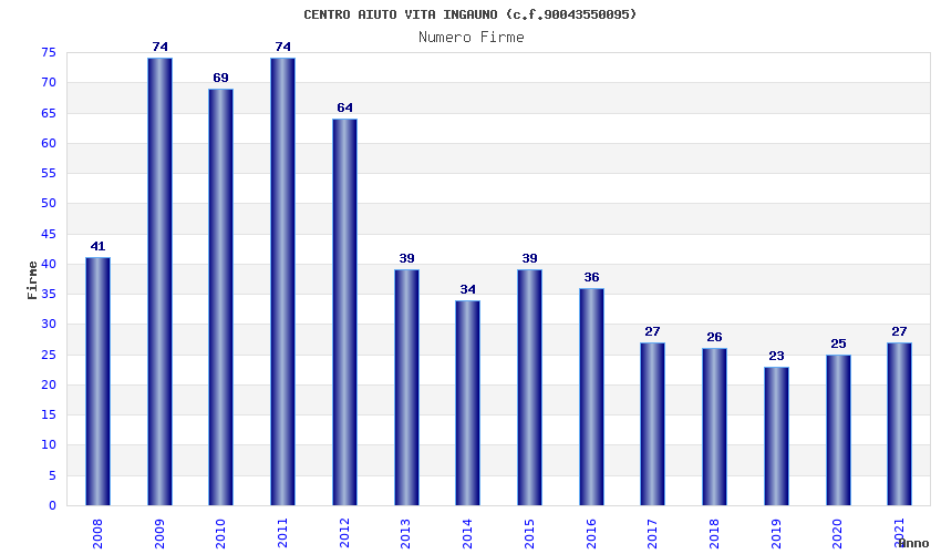 | Anno | Firme | Importi | Media | Naz. | Reg. | Prov. | Comu. |