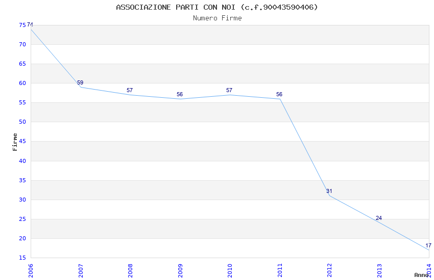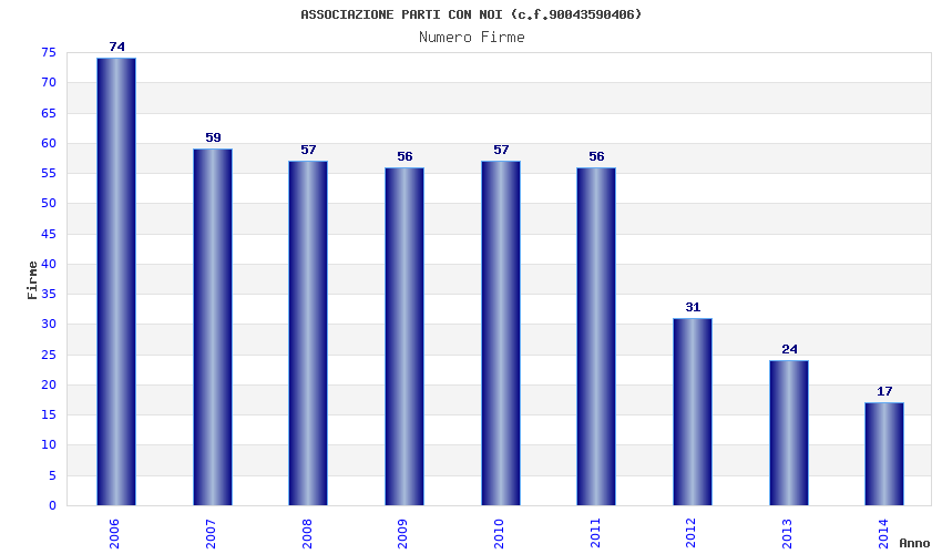 | Anno | Firme | Importi | Media | Naz. | Reg. | Prov. | Comu. |