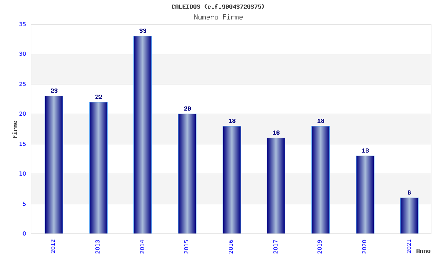 | Anno | Firme | Importi | Media | Naz. | Reg. | Prov. | Comu. |