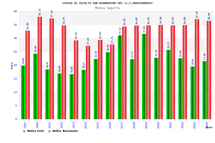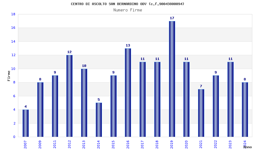 | Anno | Firme | Importi | Media | Naz. | Reg. | Prov. | Comu. |