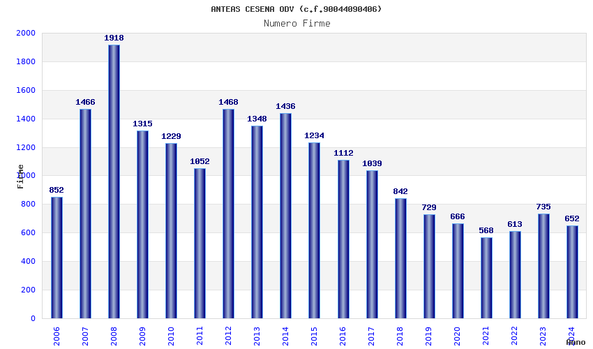 | Anno | Firme | Importi | Media | Naz. | Reg. | Prov. | Comu. |