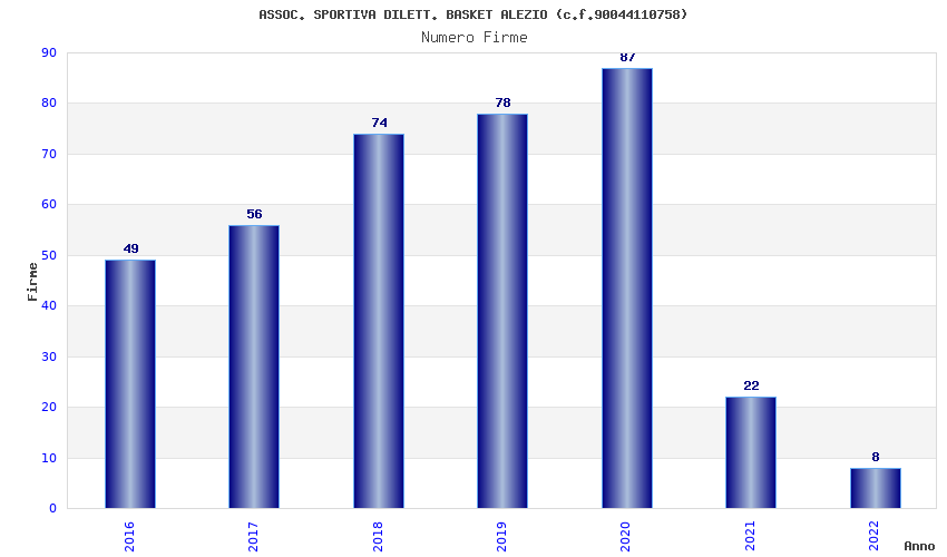 | Anno | Firme | Importi | Media | Naz. | Reg. | Prov. | Comu. |