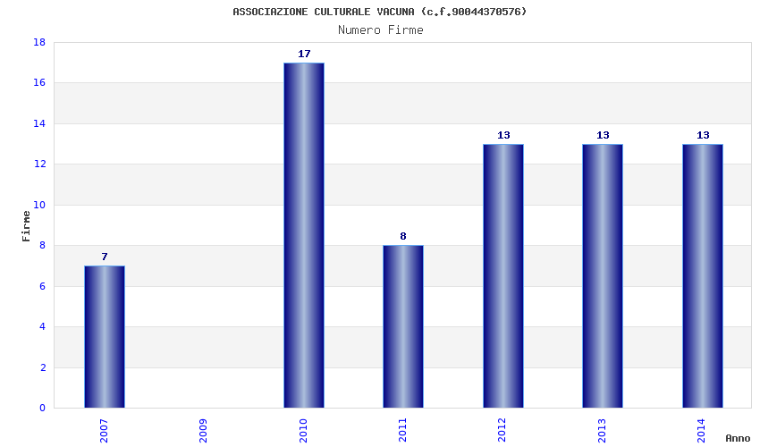 | Anno | Firme | Importi | Media | Naz. | Reg. | Prov. | Comu. |
