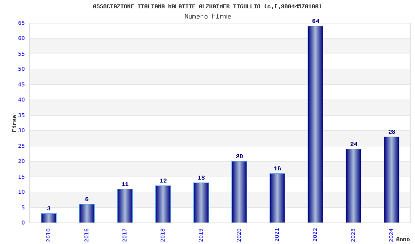 | Anno | Firme | Importi | Media | Naz. | Reg. | Prov. | Comu. |